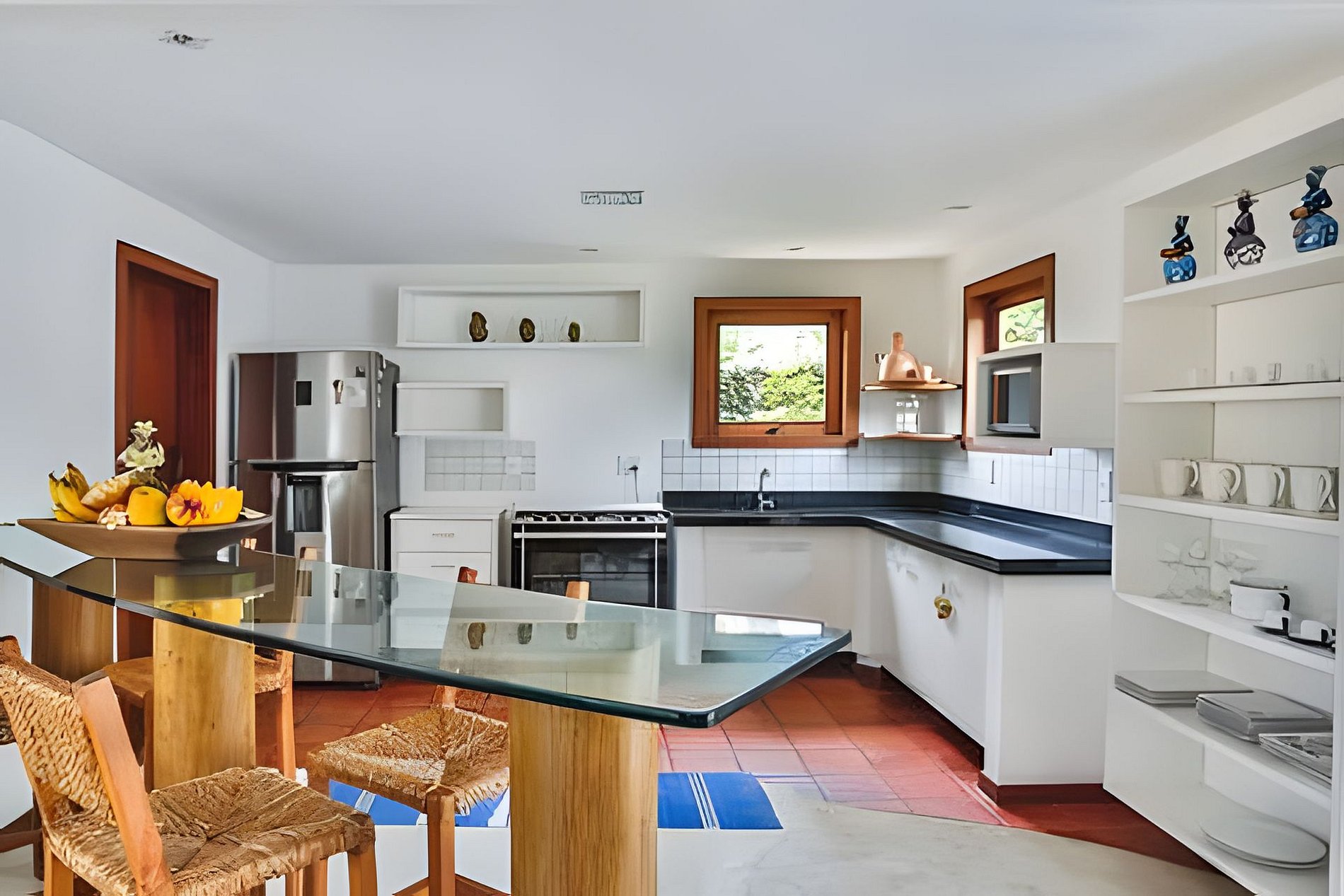 Na area externa : Churrasqueira com área gourmet particular e piscina privativa , amplo Deck com mesas ,cadeiras e espreguiçadeiras . O acesso à praia é exclusivo .A casa acomoda confortavelmente 3 casais , todavia a capacidade máxima é de 10 pessoas ( très casais nas suites ) e 4 crianças na sala no sofá bi-cama em 4 colchao de solteiro .