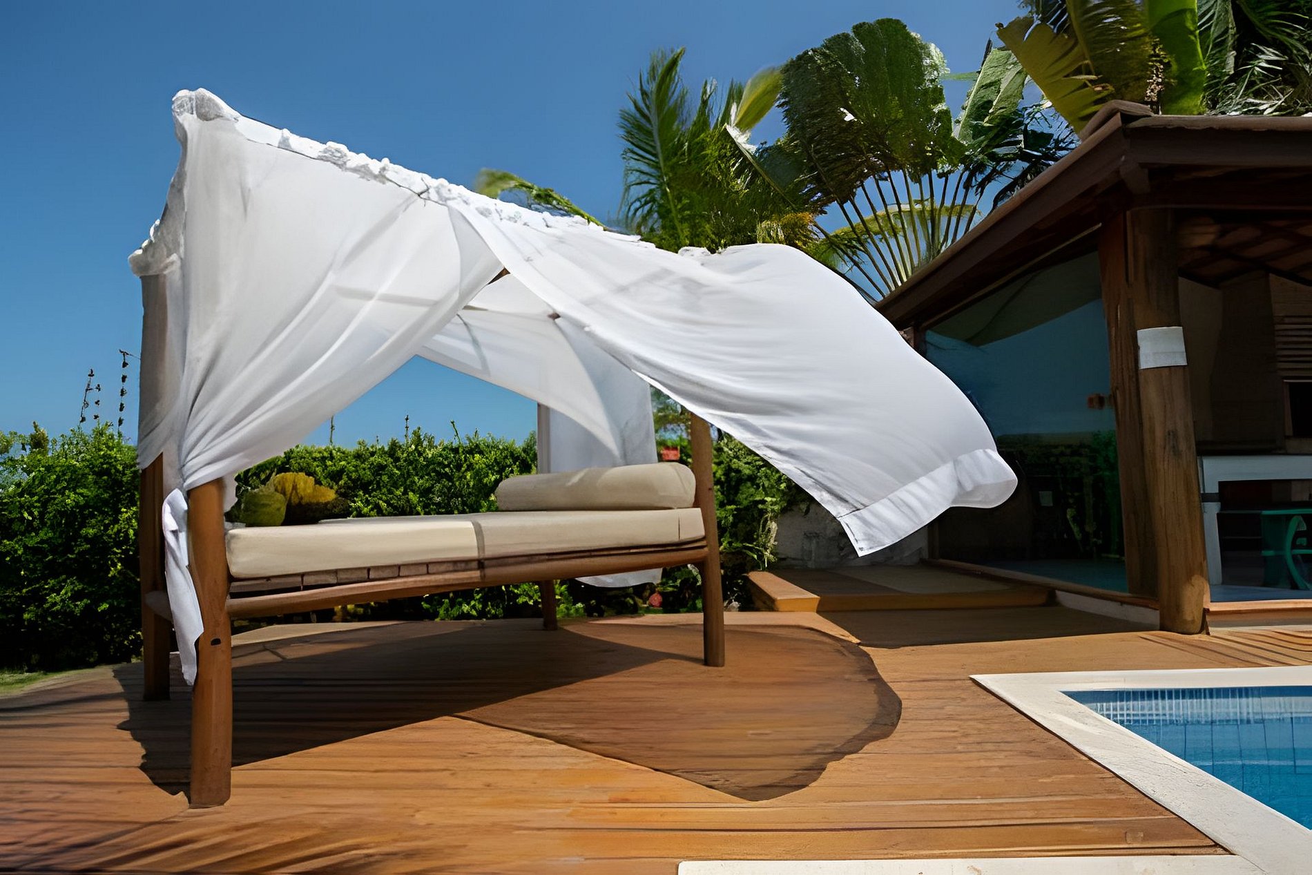 Pode se deliciar em uma piscina completamente privativa , area de churrasqueira para compartilhar junto a familia momentos unicos , tudo na frente de uma das praias nmais bellas de Arraial d`Ajuda .
