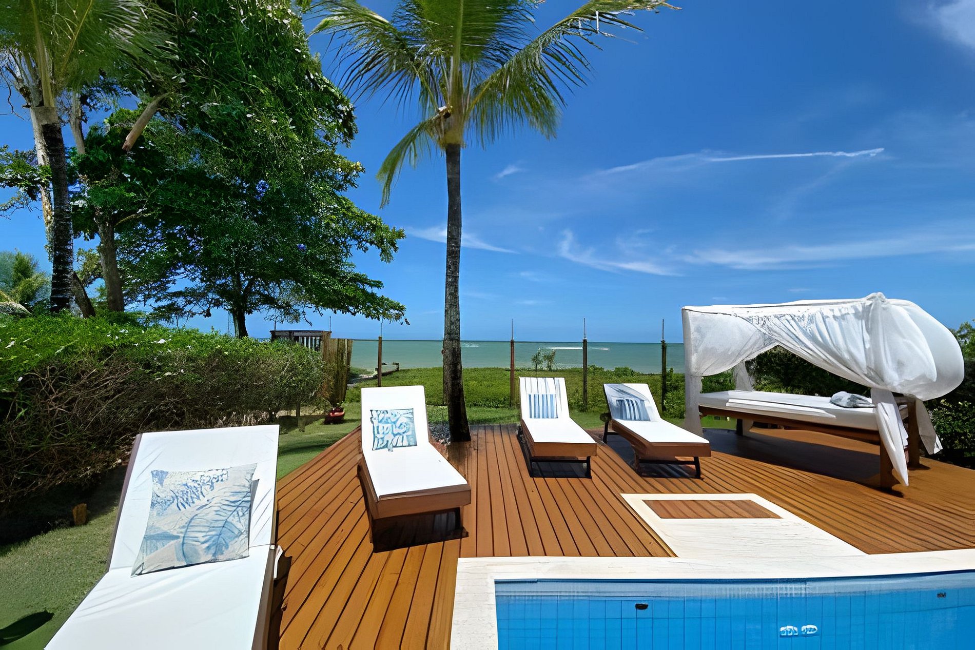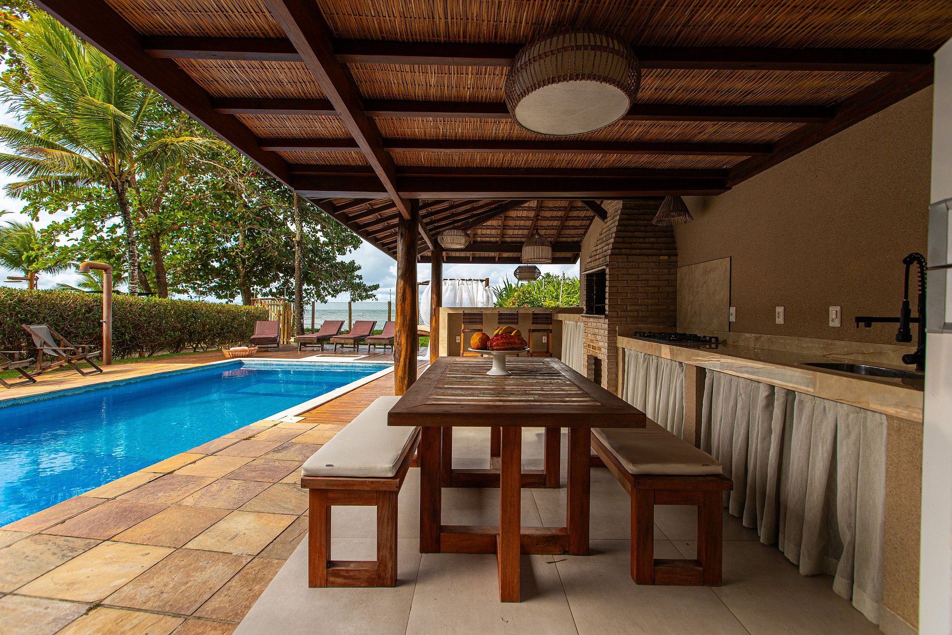 Pode se deliciar em uma piscina completamente privativa , area de churrasqueira para compartilhar junto a familia momentos unicos , tudo na frente de uma das praias nmais bellas de Arraial d`Ajuda .