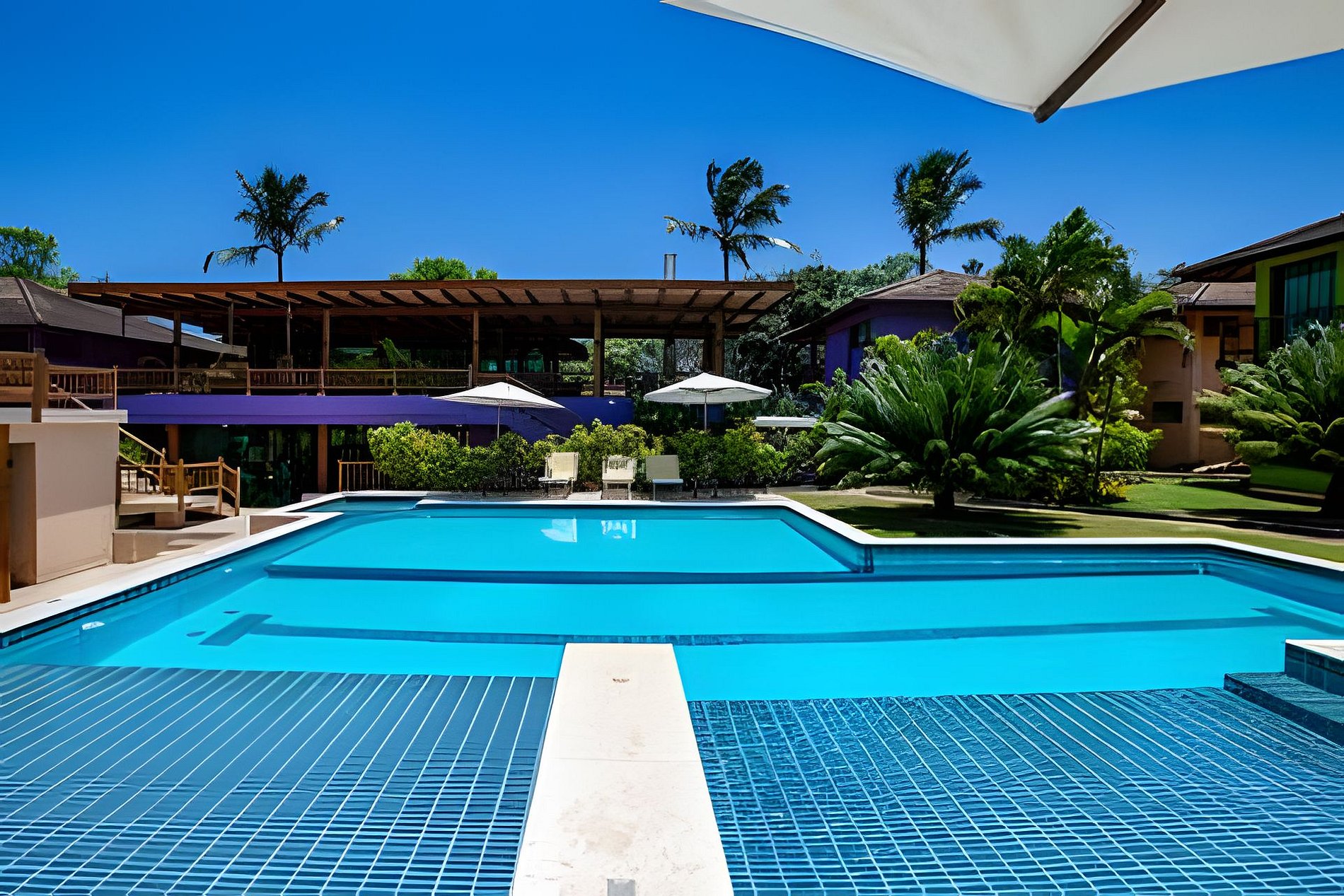 Grande piscina com raia para nadar , piscina infantil , hydromassagem , e prainha .