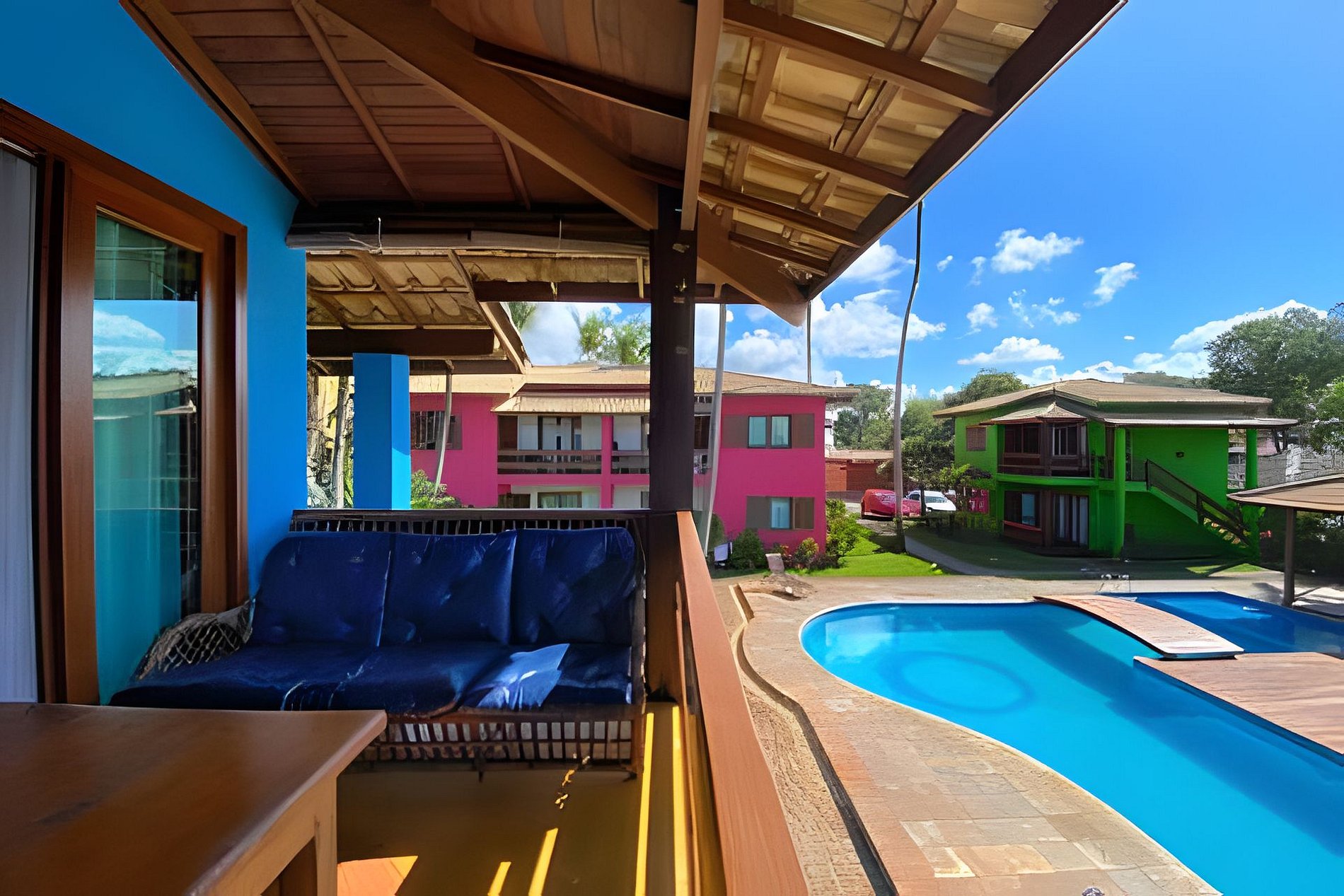 Localização do imóvel: Estamos localizados em Arraial d' Ajudana estrada da balsa, rua que conecta a balsa do centro de Arraial . O condomínio fica de frente para a praia do Delegado a apenas 300 metros do Eco Parque e 800 metros do centro histórico e da rua mais charmosa do Brasil a "Rua do Mucugê" repleta de lojas lindas e restaurantes de cozinha nacional e internacional. Acesso fácil ao centro e a Porto Seguro com transporte público na porta.